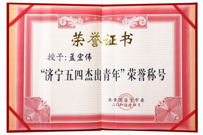 孟宏偉經(jīng)理榮獲濟(jì)寧五四杰出青年